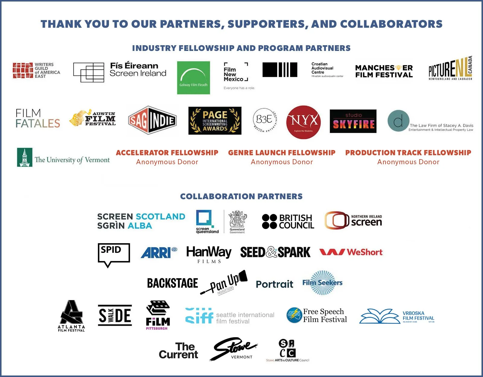 STOWE STORY LABS IS PLEASED TO ANNOUNCE THE ACCELERATOR, AUSTIN FILM FESTIVAL, FILM FATALES, LAW FIRM OF STACEY A. DAVIS, NYX HORROR COLLECTIVE, PAGE INTERNATIONAL SCREENWRITING AWARDS, SAGINDIE, STOWE LAUNCH GENRE, STUDIO SKYFIRE, and WGA EAST FELLOWSHIP FINALISTS TO THE 2026 NARRATIVE LABS.